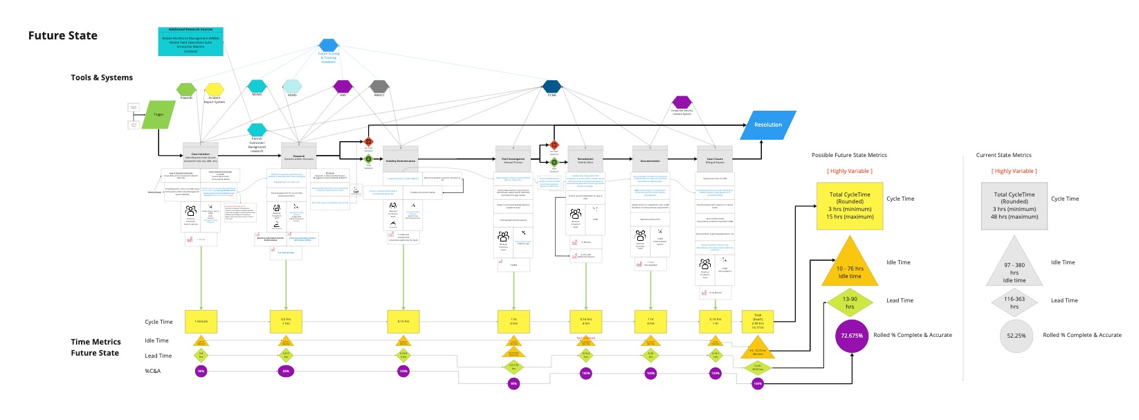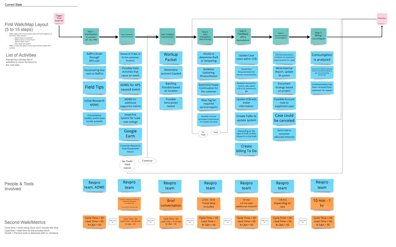 The entire current state process was mapped to understand how the Revenue Protection team accomplishes their work and how the process can be improved.